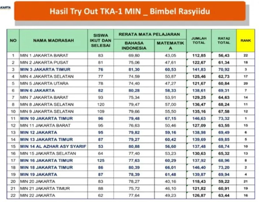 Congratulation… kepada siswa kelas 6ABC yang telah mengikuti Try Out TKA dengan memperoleh peringkat ke-2 se MIN provinsi DKI Jakarta.Try…